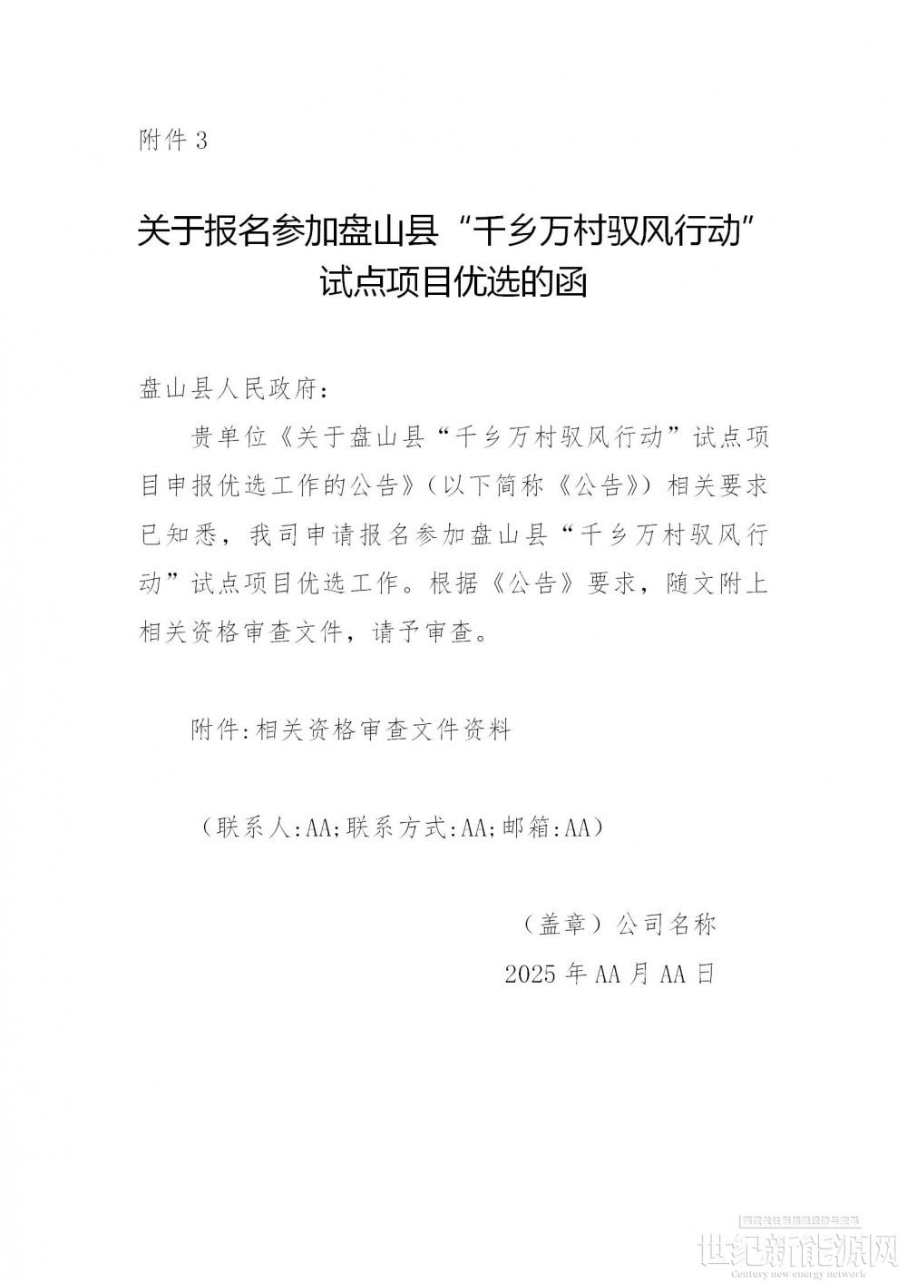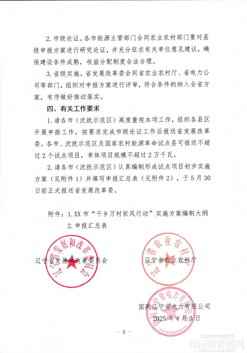此公告通过盘山县人民政府网站向社会公开发布,自发布日起至2025年5月14日,各开发企业需严格按照《关于开展“千乡万村驭风行动”助力辽宁美丽乡村建设试点工作的通知》(辽发改新能字〔2025〕33号)要求,于2025年5月14日16:00前将申报材料纸质版2份(密封并加盖公章)上报县发改局,逾期不再接收。(申报材料接收地址:盘山县发展和改革局304室;邮寄接收地址:辽宁省盘锦市盘山县太平街道府前大街盘山县人民政府,联系人:马天娇,联系电话:3552527。)