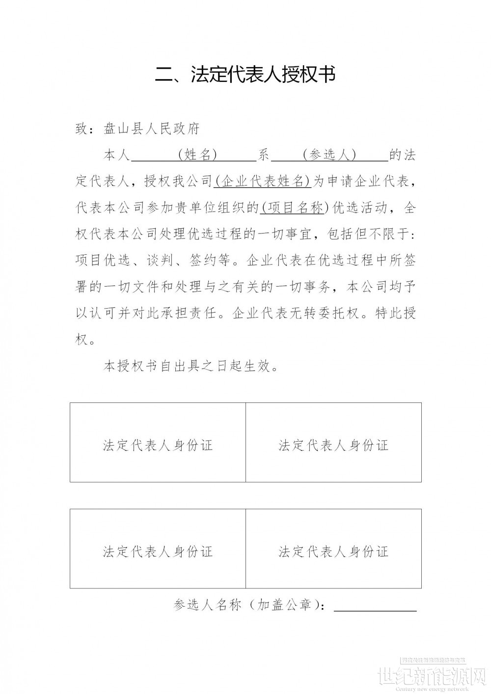(三)组织原则:以公平、公正、公开为原则优选项目投资主体,综合考虑投资能力、运营经验、资质信用技术优势等因素,采取竞争性配置等市场化方式确定。不搞地方保护、不搞行政干预、不搞区别对待。盘山县人民政府负责确认企业推选工作方案和项目推选结果。同时成立工作组,安排工作人员配合优选期间的日常事务。