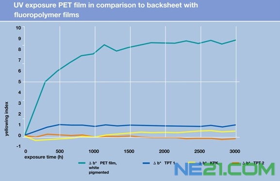 •实验室测试证明:在含氟聚合物膜的保护下,聚酯薄膜具有持久的防紫外线性能