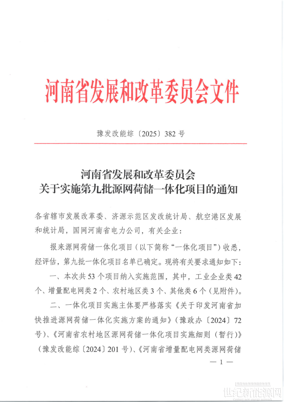 2024年5月20日,河南发改委发布《关于组织报送源网荷储一体化项目的预通知》,推动源网荷储一体化项目开发。
