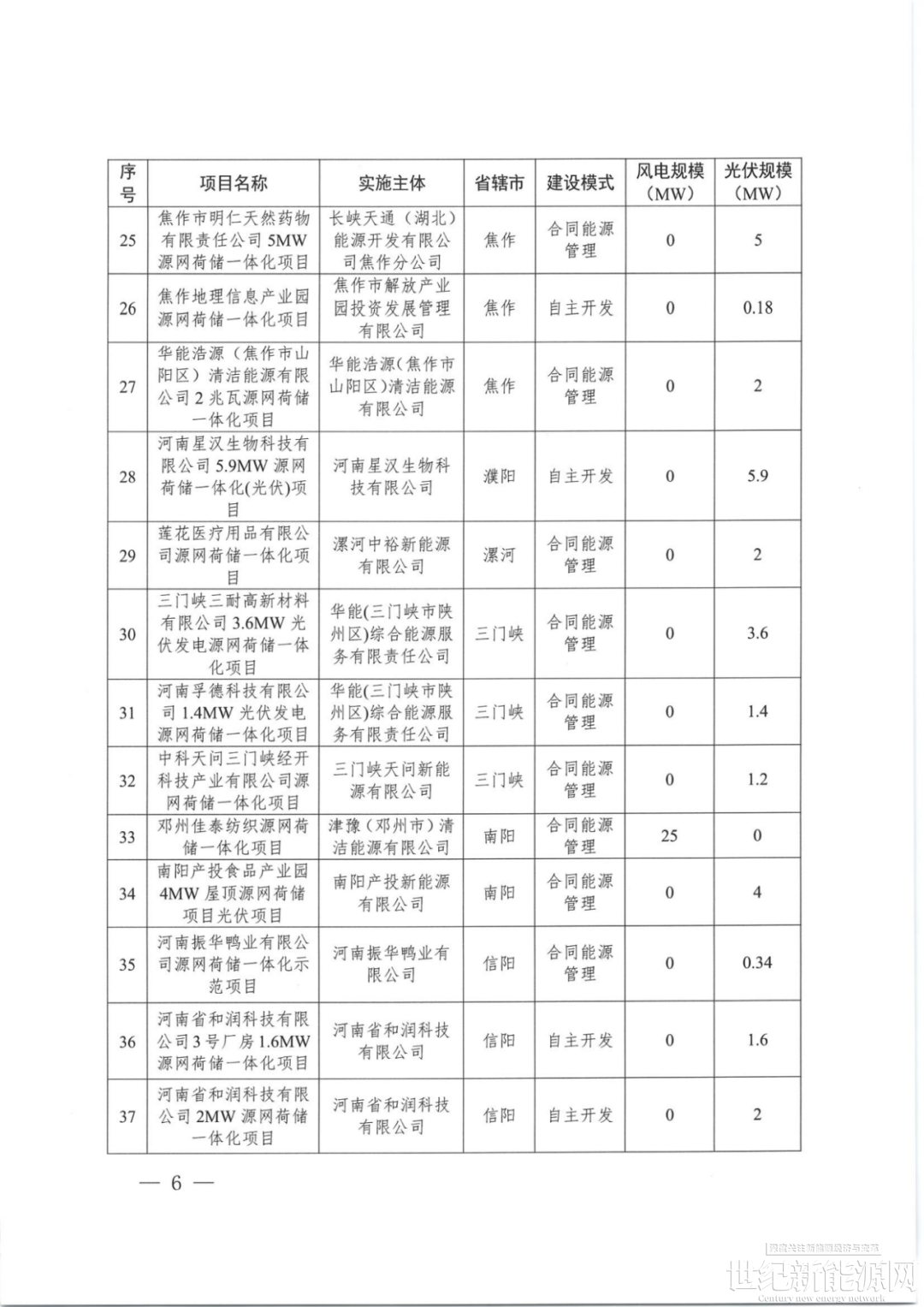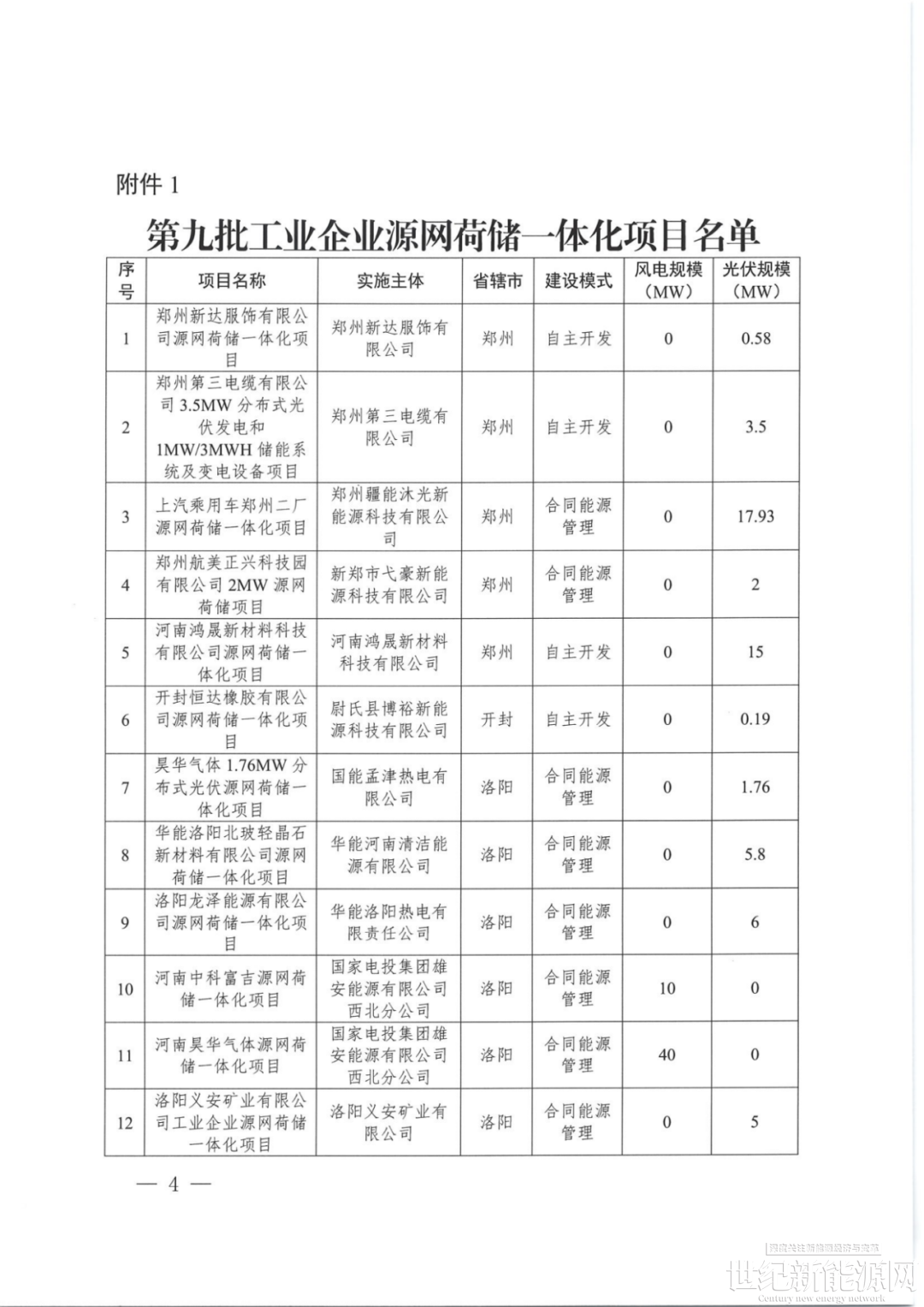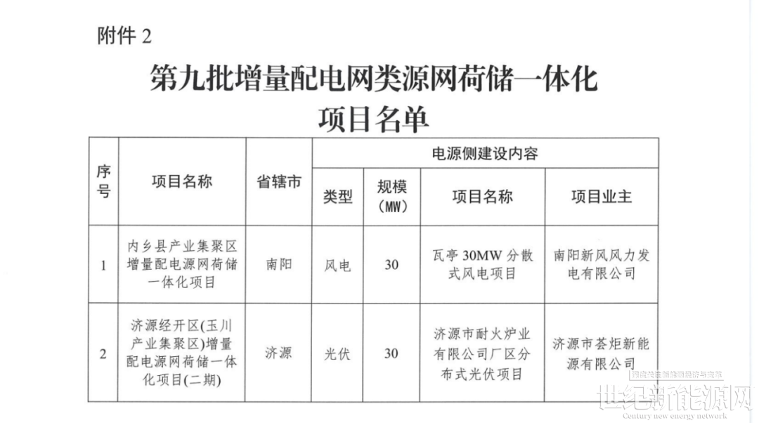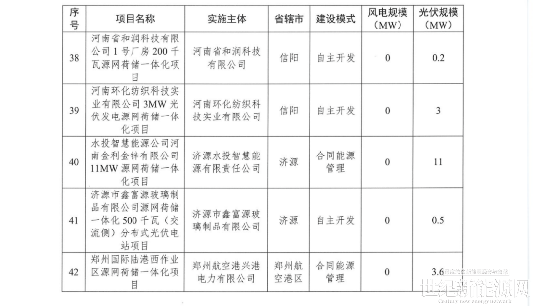 表:河南省第九批源网荷储项目情况(单位:MW)