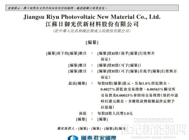 据港交所5月29日披露,江苏日御光伏新材料股份有限公司(简称:日御股份)向港交所主板递交上市申请,国泰君安国际为其独家保荐人。