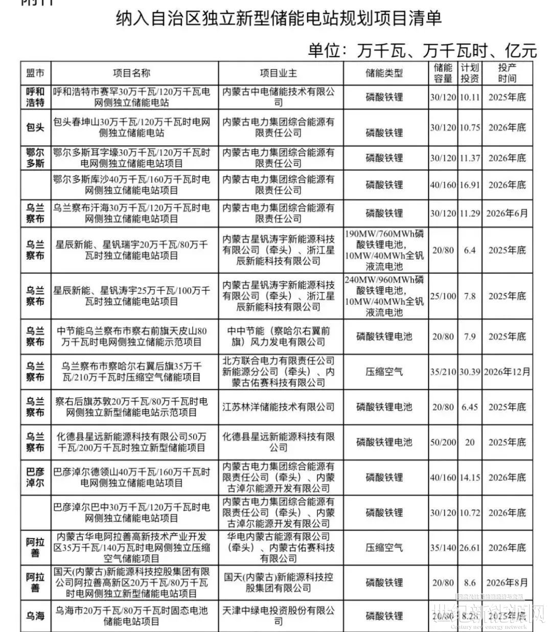 近日,内蒙古自治区能源局发布2025年第一批独立新型储能建设项目清单。最终确定16个项目纳入自治区独立新型储能电站规划。本次装机容量共4.75GW/19.7GWh。