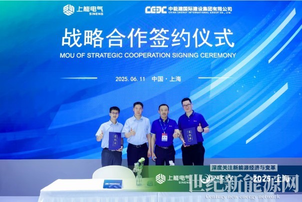 6月12日,上能电气股份有限公司与中能建国际建设集团有限公司(以下简称“能建国际”)正式签署战略合作协议。中能建国际集团副总裁、新能源国际投资联盟秘书长叶晖,机电成套事业部主管尧锐,上能电气股份有限公司联合创始人、副董事长段育鹤,涉外业务中心高级大客户经理李岳明出席签约仪式。