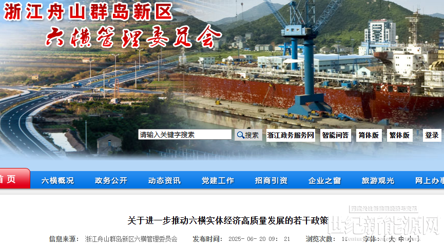 近日,浙江舟山群岛新区六横管理委员会发布《关于进一步推动六横实体经济高质量发展的若干政策》。