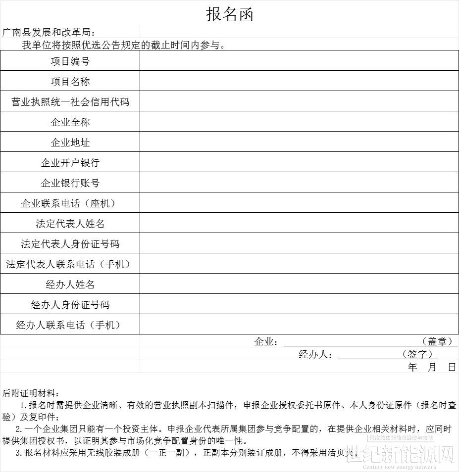 3.本次优选结果将于优选结束后,在广南县政务网站进行公示,如有疑义请在公示有效期内向监督部门实名书面提出,监督部门及联系电话:广南县发展和改革局、0876-3057614。