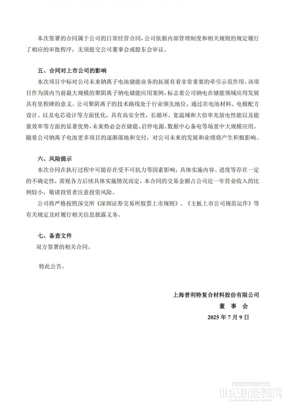 普利特表示,本次项目中标对公司未来钠离子电池储能业务的拓展有着非常重要的牵引示范作用。该项目作为国内当前最大规模的聚阴离子钠电储能应用案例,标志着公司钠电在储能领域应用发展具有里程碑的意义。公司聚阴离子的技术路线处于行业领先地位,通过在电池材料、电极配方设计、以及电芯设计等方面优化,具有高安全性,长循环、宽温域和大倍率充放电性能以及能量效率等方面的显著优势,未来势必会在储能、启停电源、数据中心备电等场景中大规模应用。随着公司钠离子电池更多项目的逐渐落地和交付,对公司未来的发展和业绩将产生积极影响。