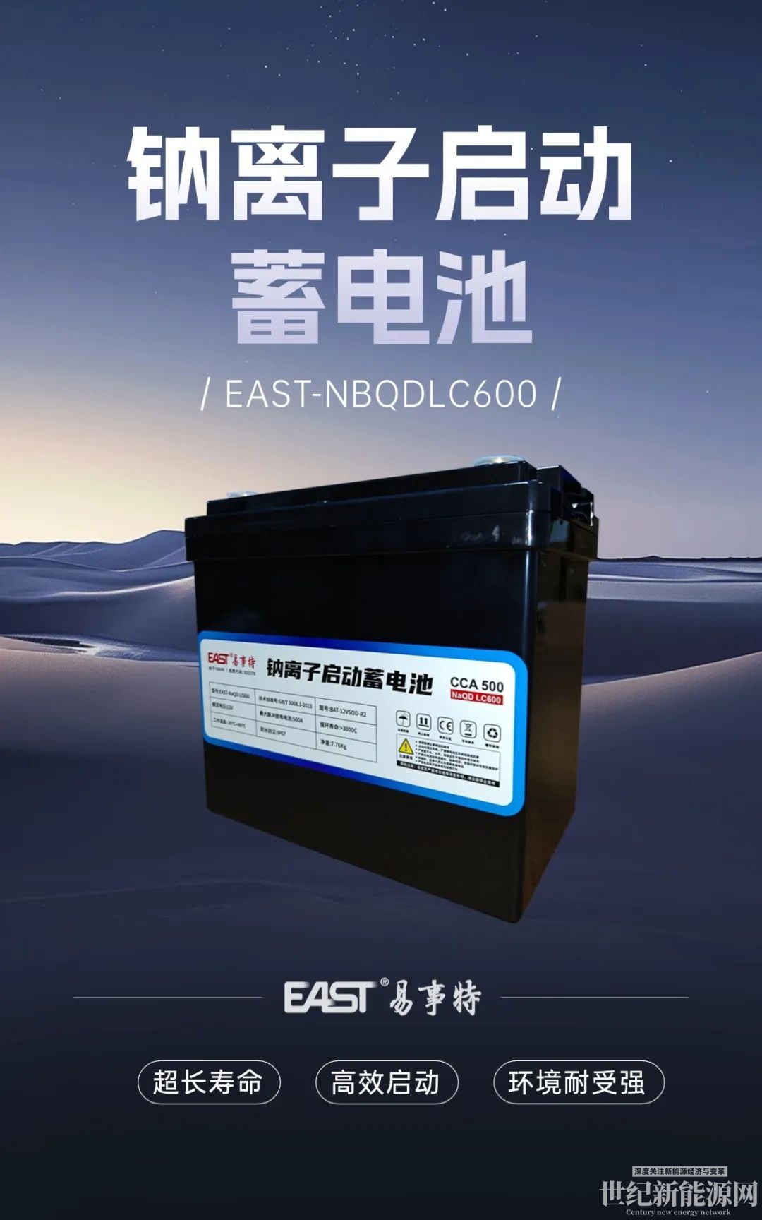 启动效率较铅酸电池提升1倍,低温环境下性能稳定。