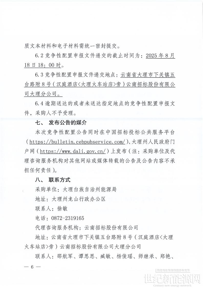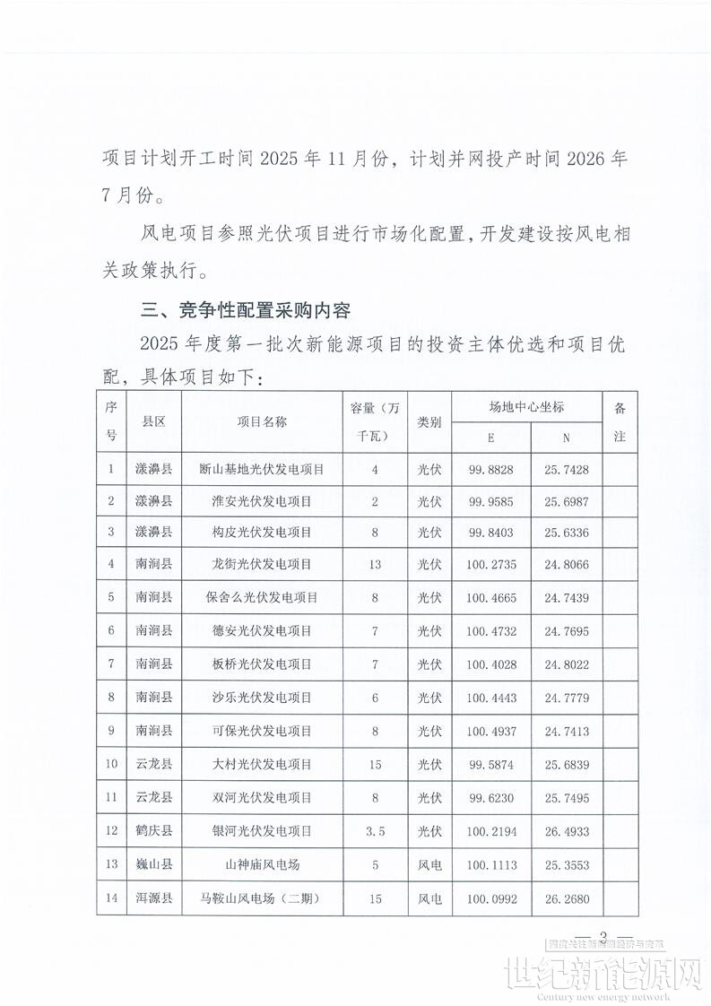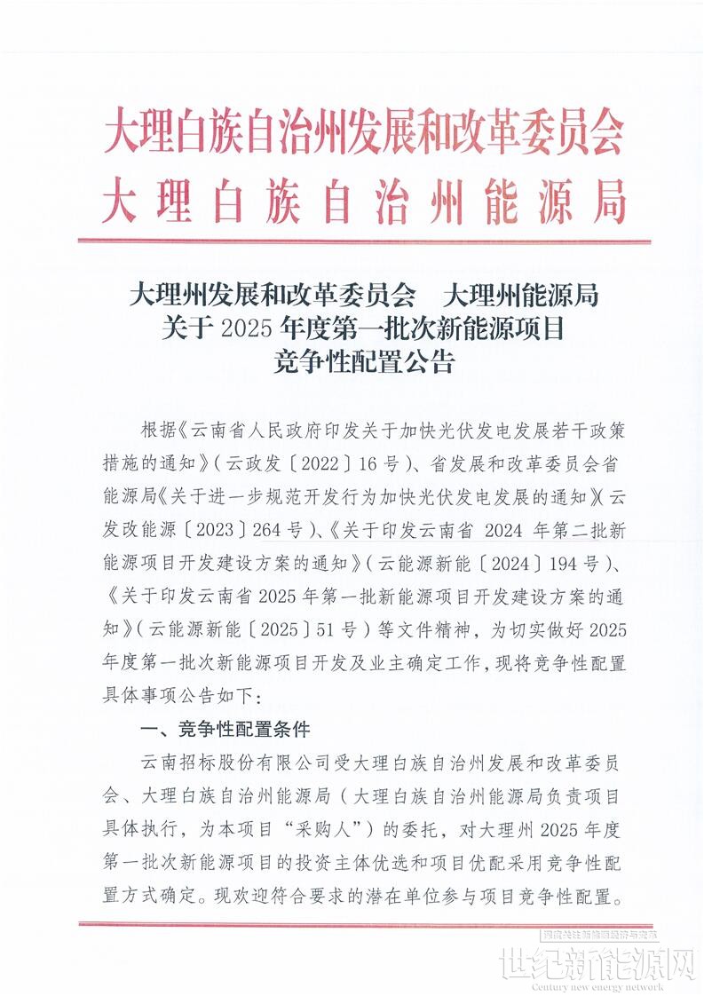 7月29日,云南省大理州发展和改革委员会、大理州能源局发布关于2025年度第一批次新能源项目竞争性配置公告。