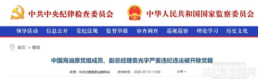 中国海油原副总经理袁光宇严重违纪违法被开除党籍