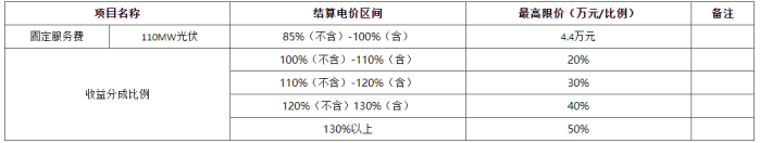 (2)收益分成:超过全省结算均价100%以上部分*中标比例进行分成,电站结算电价以电网公司发布的正式结算单为准。