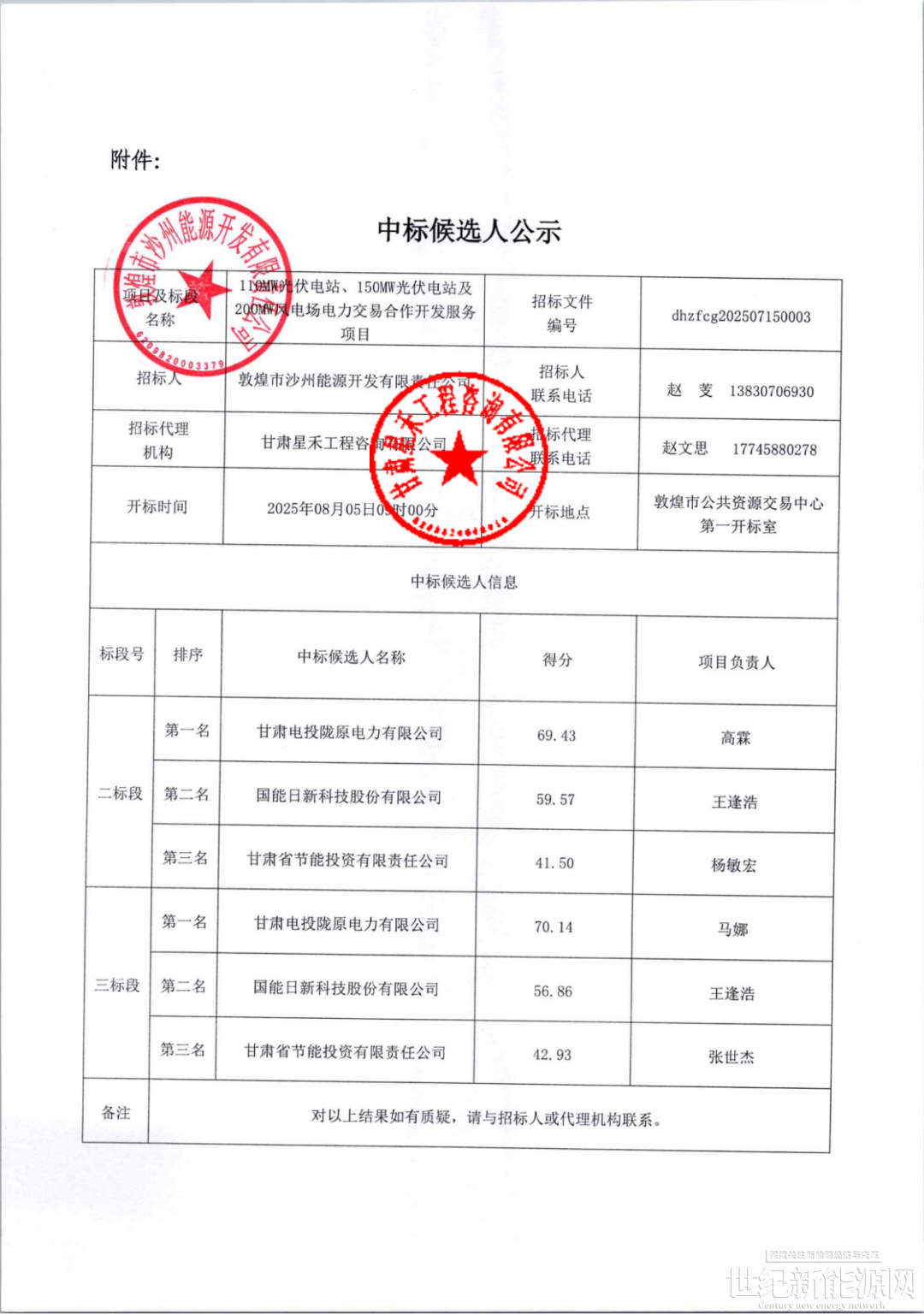该项目招标人为敦煌市沙州能源开发有限责任公司,是敦煌市属国企。该项目共分三个标段。