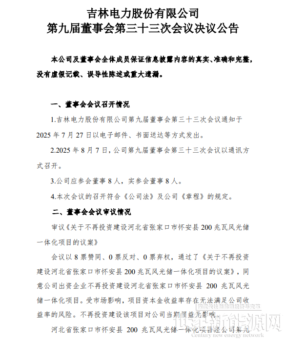 近日,国家电投旗下吉电股份公告宣布,董事会决议,不再投资建设河北省张家口市怀安县200MW风光储一体化项目。