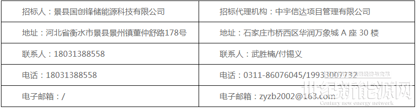 招标项目名称:景县国创锋储能源100MW/400MWh独立储能项目