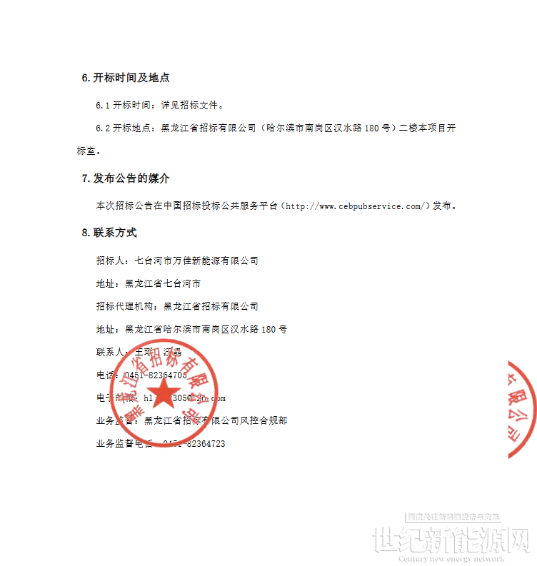据了解,该项目招标人为七台河市万佳新能源有限公司,项目地点位于黑龙江省七台河市。