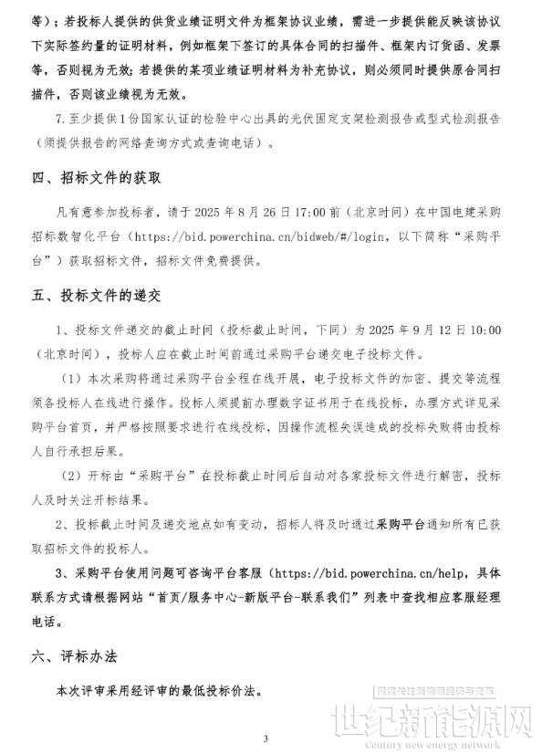 8月15日,中国电建发布《2025-2027年度光伏固定支架框架入围集中采购项目招标公告》。