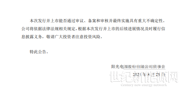 8月25日,阳光电源发布关于筹划发行H股股票并在香港联合交易所有限公司上市的提示性公告。