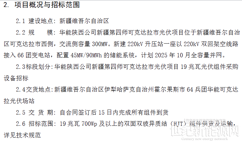 8月26日,华能陕西公司新疆第四师可克达拉市光伏项目19兆瓦光伏组件采购设备招标] 候选人公示。