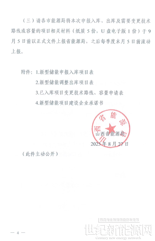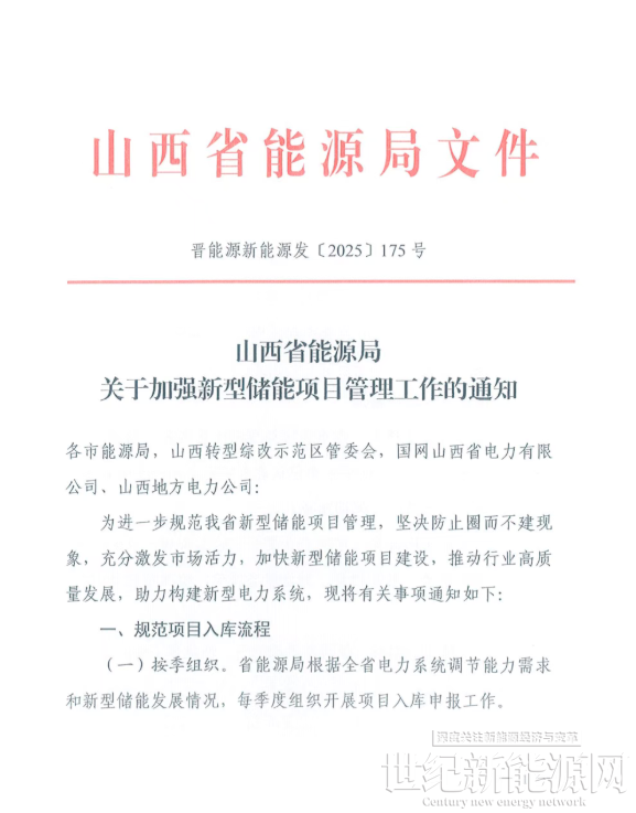 近日,山西能源局下发关于加强新型储能项目管理工作的通知。通知指出,入库项目须在6个月内实质性开工,12个月内建成并网。入库项目在建设期和全容量并网后5年内不得擅自转让。