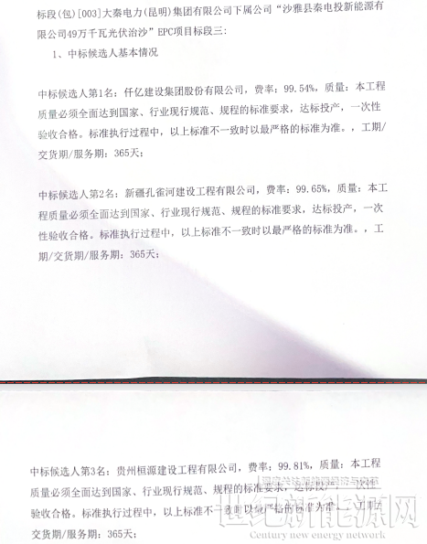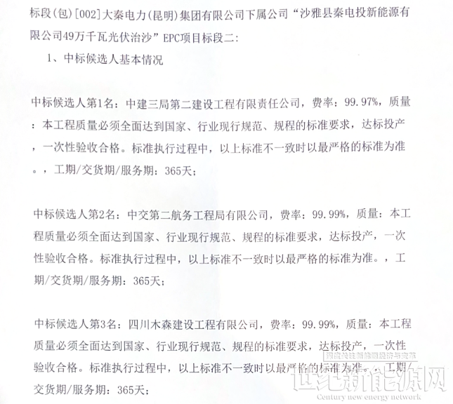 标段(包)[003]大秦电力(昆明)集团有限公司下属公司“沙雅县秦电投新能源有限公司49万千瓦光伏治沙”EPC项目标段三: