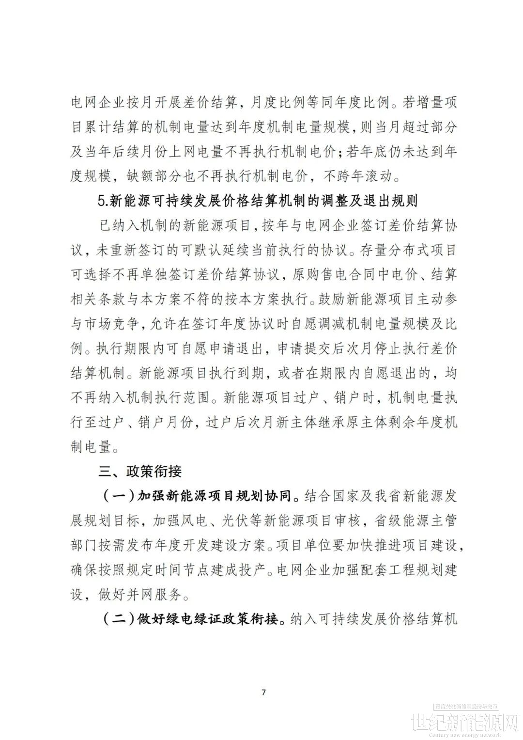 执行期限:新能源发电项目达到全生命周期合理利用小时数(具体到月)或投产运行满20年(具体到月)较早者的次月起退出差价结算机制。