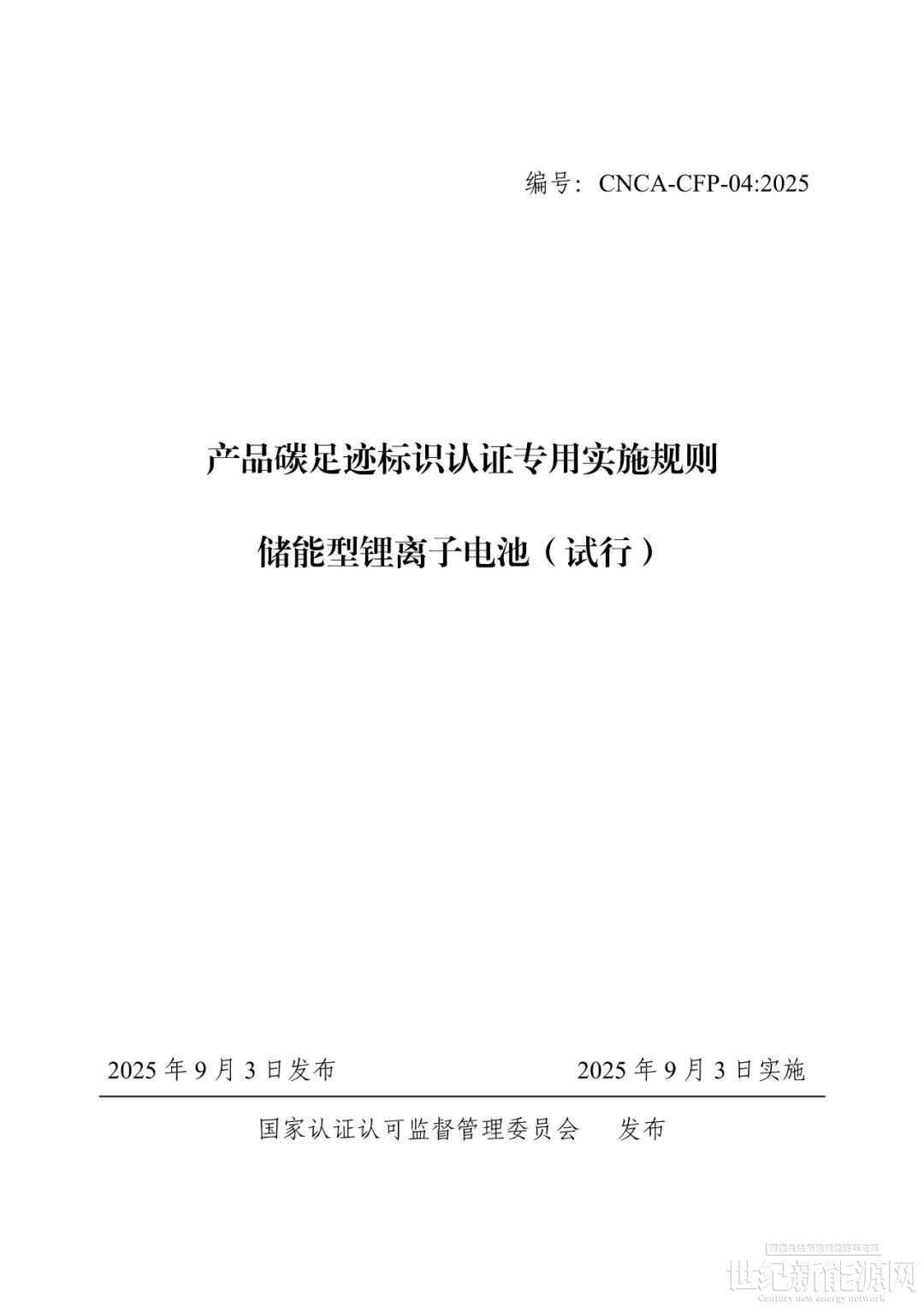 9月9日,国家认监委发布第一批产品碳足迹标识认证专用实施规则(试行),其中包括储能型锂离子电池等17种产品碳足迹标识认证专用实施规则(试行)。