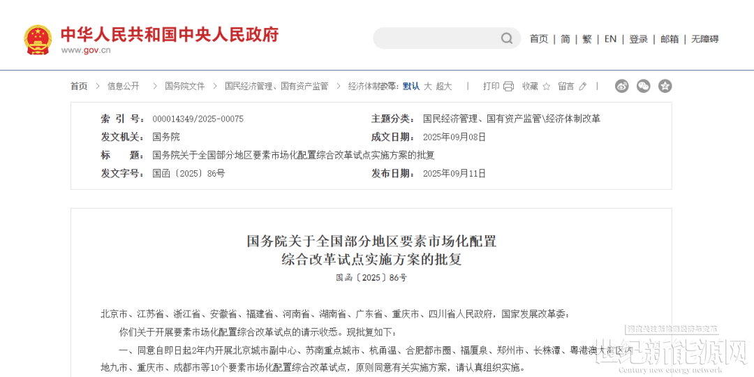 9月11日,国务院关于全国部分地区要素市场化配置综合改革试点实施方案的批复。