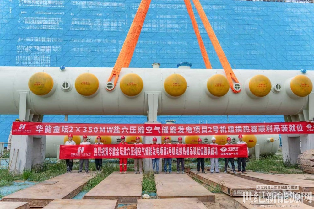 日前,由山东电建一公司承建的华能金坛2×350兆瓦盐穴压缩空气储能发电项目2号机组首台换热器顺利吊装就位,拉开了机组设备安装的大幕,标志着项目建设迈入新阶段。