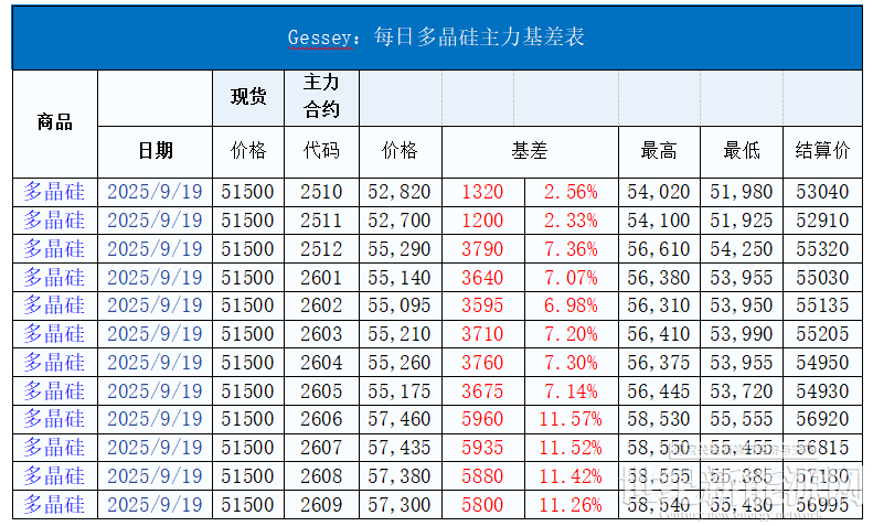 今日硅料价格整体维稳,N型料主流价格在50-59元/公斤,均价51.5元/公斤。N型颗粒硅主流价格在47-49.5元/公斤,均价49元/公斤。国产复投特级硅料主流价格在36-44元/公斤,均价43.5元/公斤,国产致密特级硅料主流价格在35-43元/公斤,均价42.5元/公斤。全球多晶硅料主流价格在19-22元/公斤,均价20元/公斤。