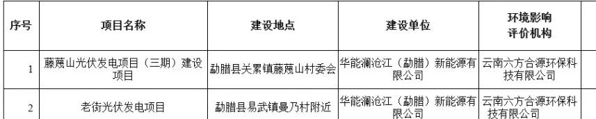 根据公示信息显示,上述2个光伏项目建设单位均为华能澜沧江(勐腊)新能源有限公司,均为首次申报的新建项目。