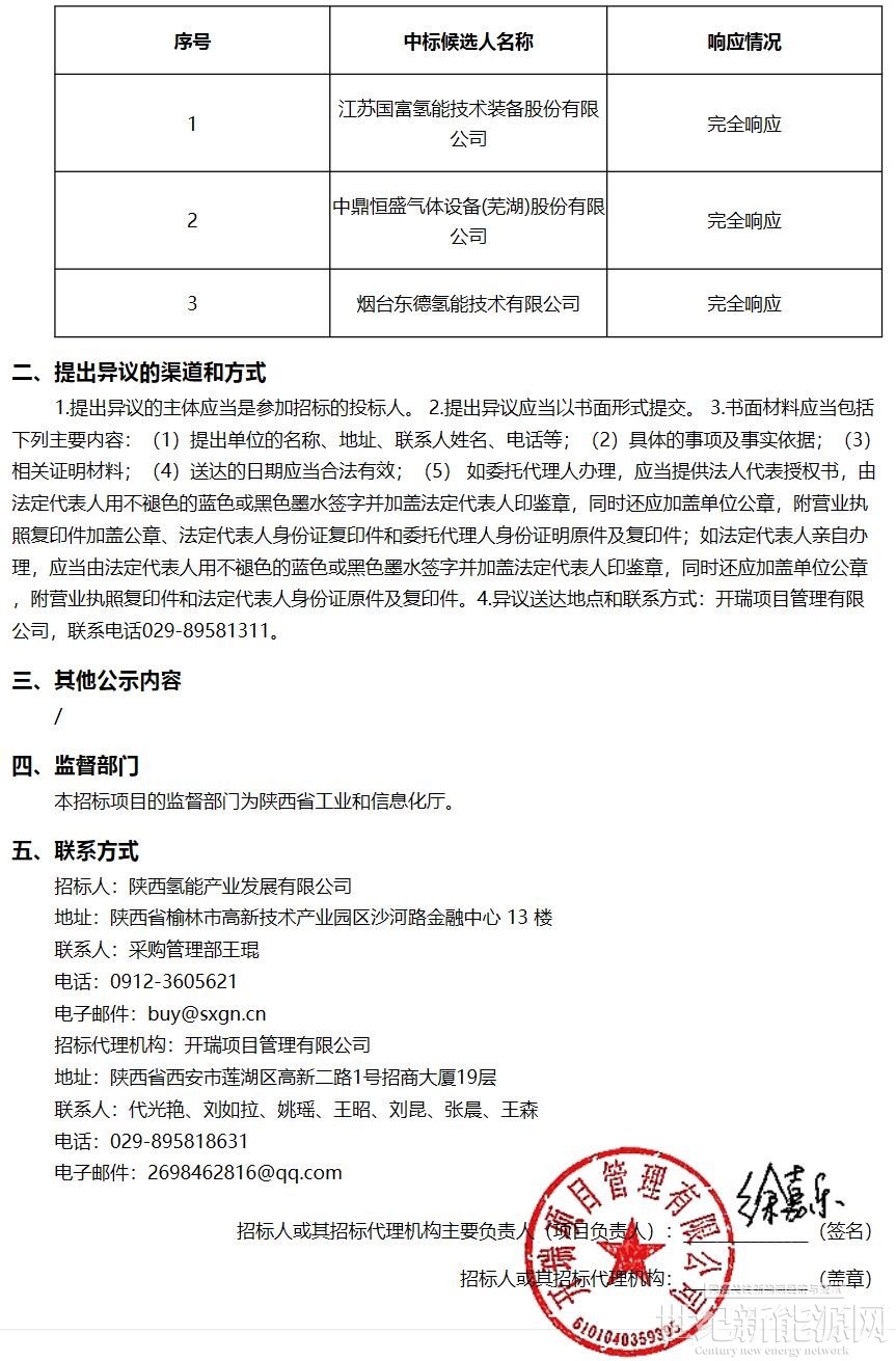 9月22日,陕西氢能产业发展有限公司榆林零碳产业园氢能(制氢)示范项目压缩机组采购项目【二标段:氢气压缩机(隔膜式)】-中标候选人公示。
