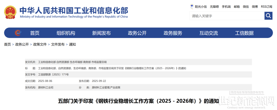 9月22日,国家工信部、自然资源部、生态环境部、商务部、市场监管总局联合印发了《钢铁行业稳增长工作方案(2025-2026年)》,这也是国家层面发布的系列两年期行业稳增长工作方案。