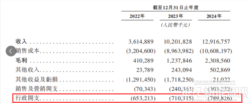 根据招股书显示,2022~2024年企业行政支出共计21.53亿元,但是其研发支出却只有12.12亿元,不到行政支出的70%。相比于宁德时代、比亚迪、亿纬锂能等保持在5%以上的研发费用率,企业2024年的研发费用率仅有4.1%,相对较低。