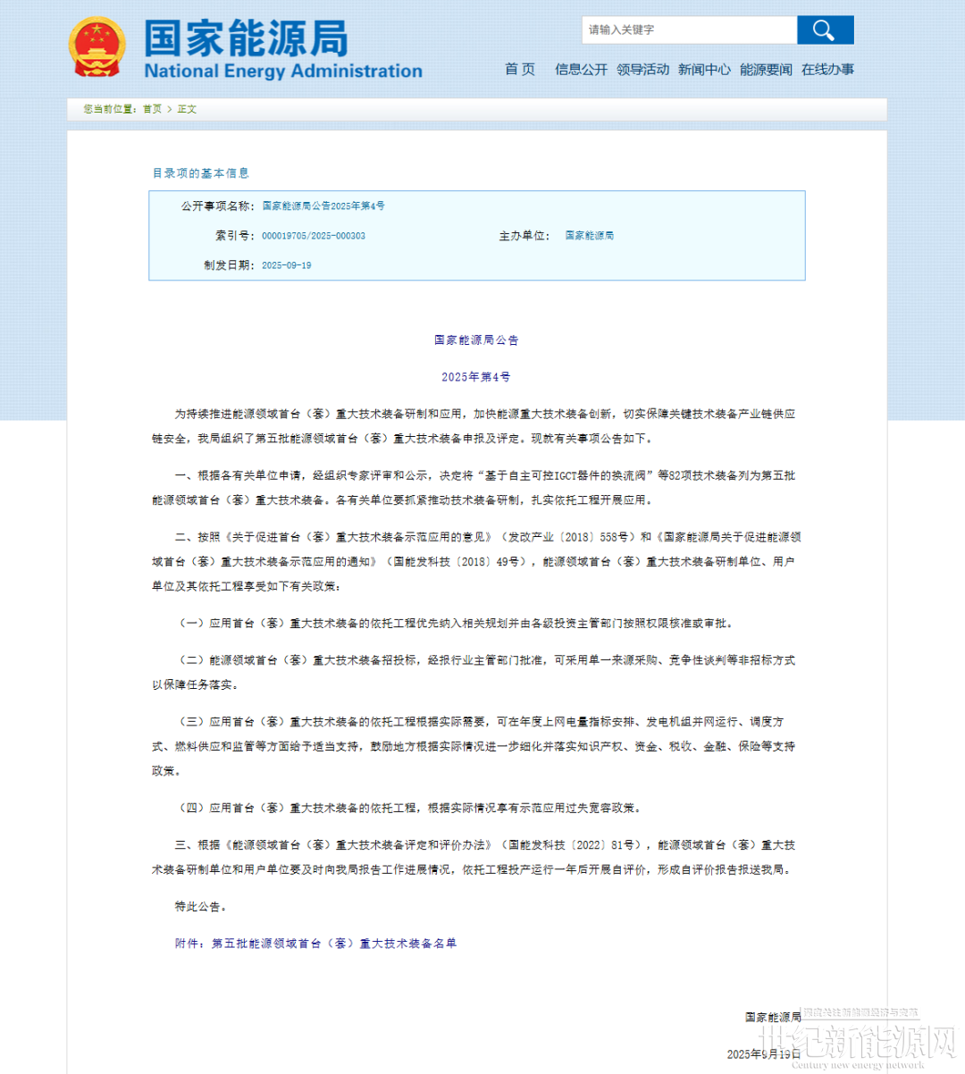 根据公告,经组织专家评审和公示,将“基于自主可控IGCT器件的换流阀”等82项技术装备列为第五批能源领域首台(套)重大技术装备。