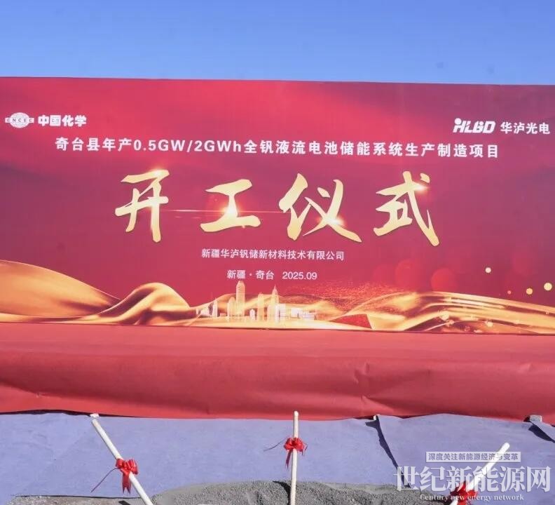 2025年9月26日,四川华泸光电集团有限公司在新疆奇台县喇嘛湖梁工业园化工集中区隆重举行年产0.5GW/2GWh全钒液流电池储能系统生产制造项目开工奠基仪式,标志着这一重大新能源储能项目正式进入建设实施阶段。
