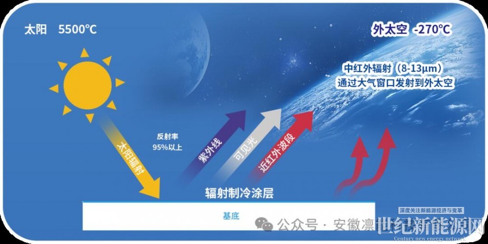 辐射制冷技术并非传统意义的“制冷”,而是通过特殊材料将物体表面的热量以红外辐射形式直接发射到外太空(冷源),实现自然降温。这就像给电柜打开一扇“通往宇宙的散热窗”,无需电力驱动,却能持续降温。
