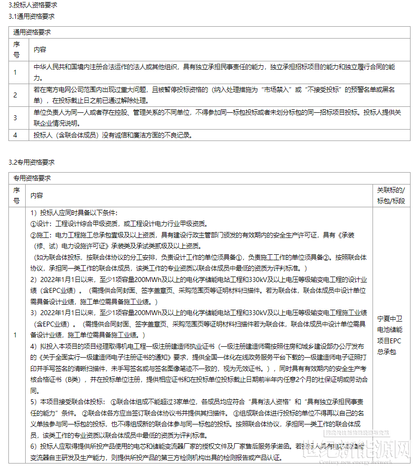 南网储能公司科技公司宁夏中卫电池储能项目EPC总承包公开招标项目招标公告