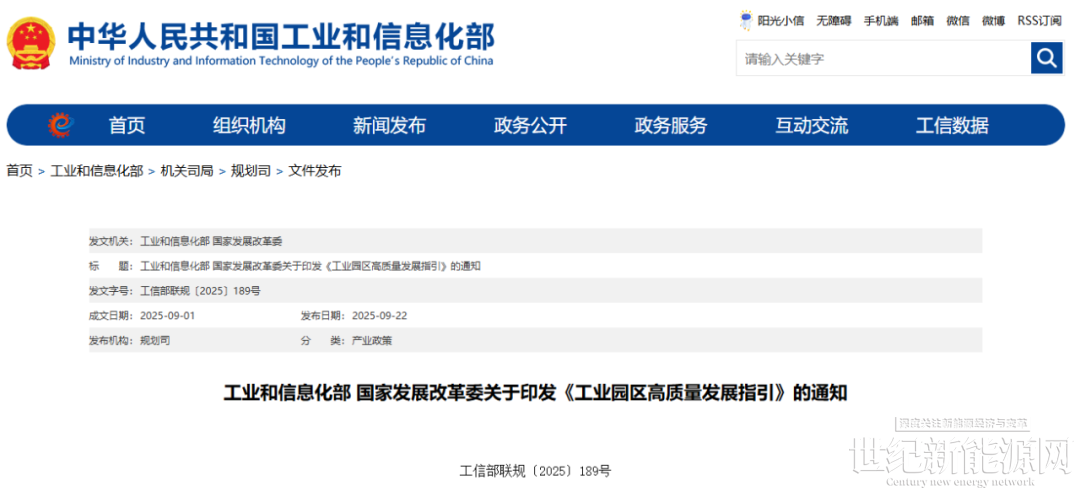 9月22日,工业和信息化部 国家发展改革委关于印发《工业园区高质量发展指引》的通知,《通知》提出推进园区绿色低碳转型:实施综合能效提升工程,加快分布式光伏、分散式风电、多元储能一体化布局,推广源网荷储一体化和多能互补;加强能源梯级利用与余热余压回收,建设智慧能源管理平台,参与绿电交易与绿证、碳足迹管理;完善充电基础设施,推动重卡等场景电动化,发展氢电耦合等新型储能;培育绿色工厂和供应链,创建绿色低碳示范园区,推动工业碳达峰碳中和。