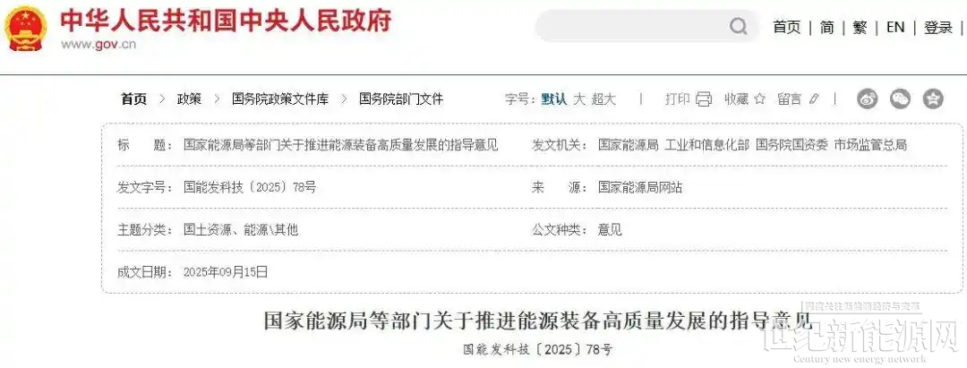 9月22日,国家能源局、工业和信息化部、国务院国资委、市场监管总局联合发布了《关于推进能源装备高质量发展的指导意见》。针对可再生能源发电和综合利用装备,该意见提出,突破高效晶硅—钙钛矿叠层及异质结、背接触等光伏组件技术,研制高效光伏系统、高压组串式逆变器等关键装备,满足新型电力系统下光伏系统安全高效发电需求。突破高效率、低成本30万千瓦级光热发电成套技术装备,进一步提升光热发电效率与达产水平。