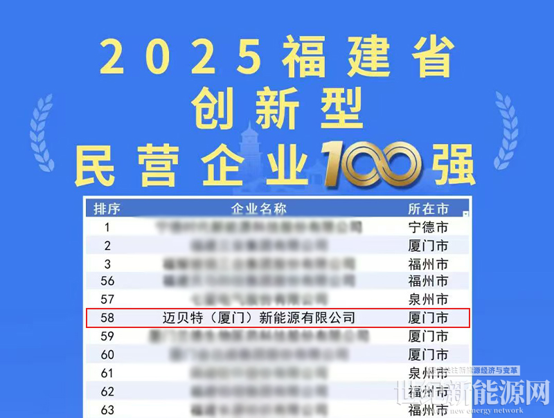 9月28日,福建省工商联揭晓2025福建省民营企业100强,以及制造业、服务业、创新型民营企业100强四大榜单。其中,迈贝特荣登创新型民营企业百强榜,位列第58名,成为唯一上榜的光伏支架企业,强劲的科技创新实力和品牌影响力再次得到认可,彰显了企业在光伏支架领域的领先地位。