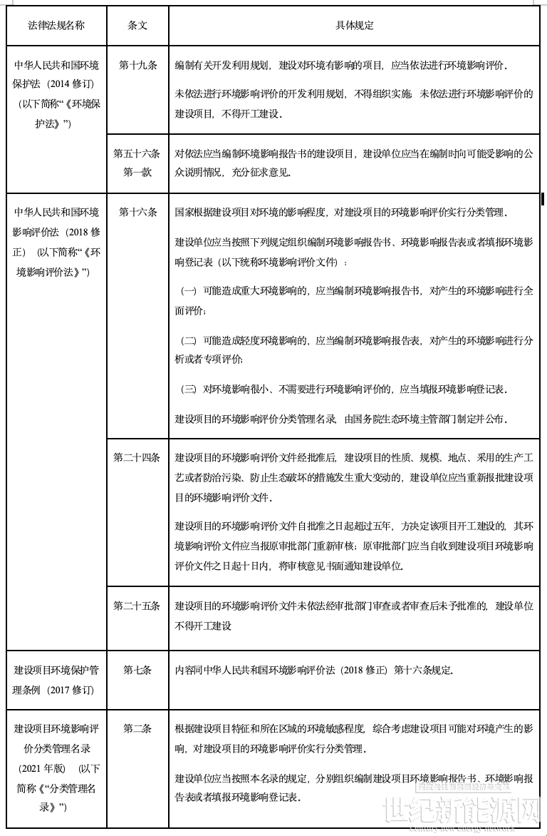 (二)新能源建设项目的环境影响评价分类管理及审批