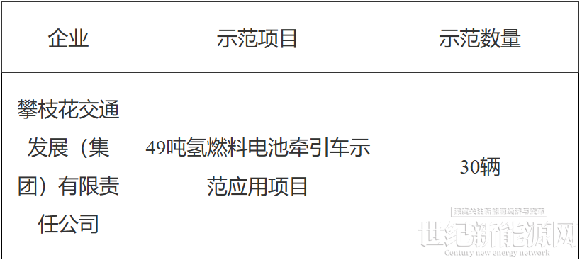 关于攀枝花市氢燃料电池汽车示范奖励通过评审项目清单的公示