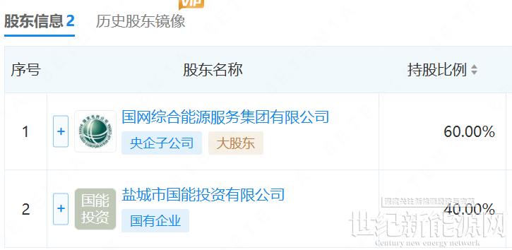 据悉,该公司由国网综合能源服务集团有限公司(60%)、盐城市国能投资有限公司(40%)共同持股。