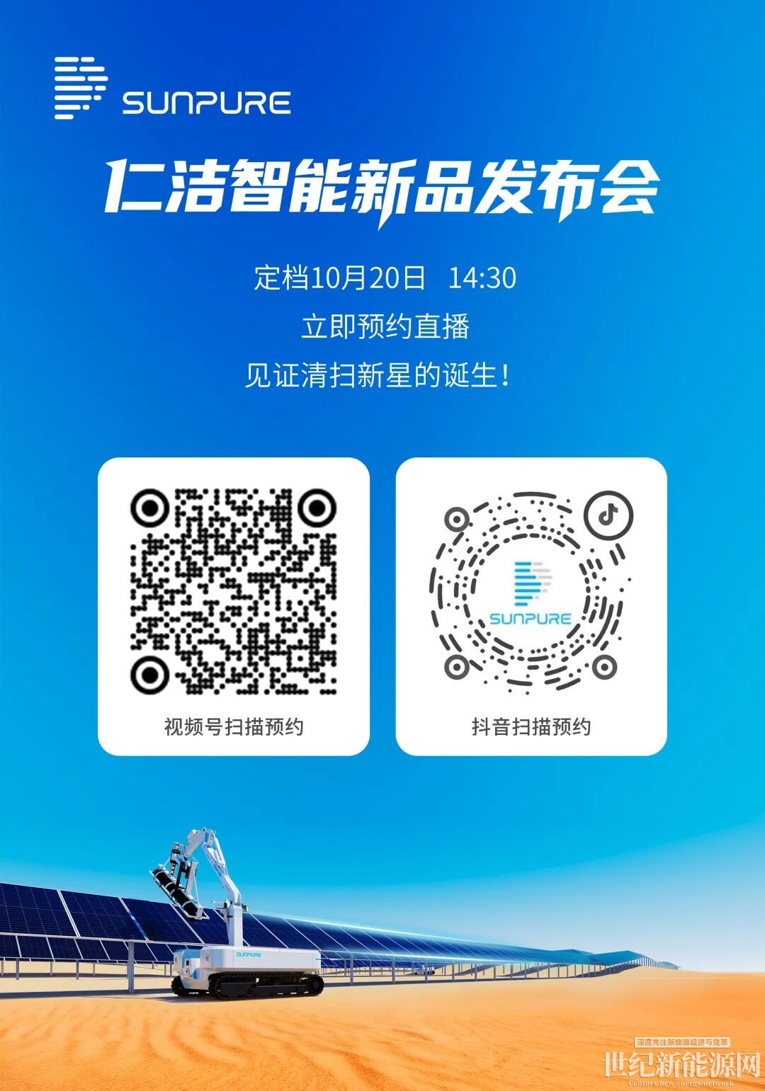 新品发布会将在10月20日 14:30举办,诚邀行业伙伴与朋友们扫码预约直播,共同见证光伏清扫新星诞生!