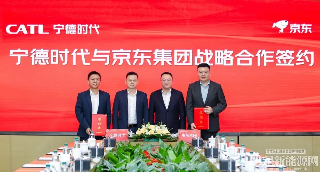 宁德时代监事会主席、生态发展委员会主席吴映明,京东集团战略执行委员会委员、京东物流CEO胡伟出席并见证签约。宁德时代党委第一书记、副总裁孟祥峰与京东集团高级副总裁李靖代表双方签署协议。