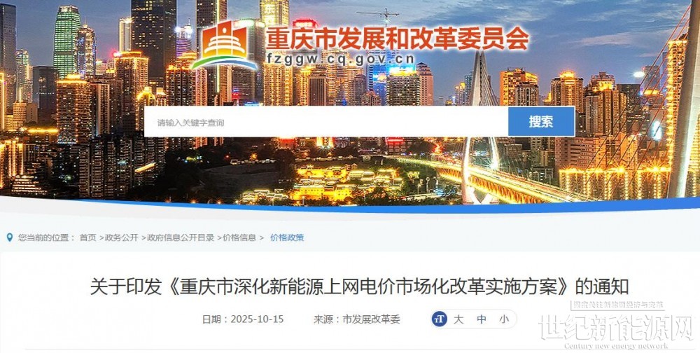 10月15日,《重庆市深化新能源上网电价市场化改革实施方案》正式印发。