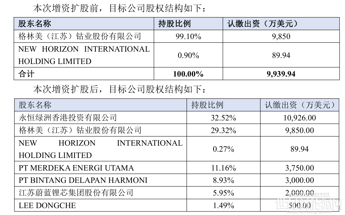 10月15日,蔚蓝锂芯发布参与格林美印尼项目增资扩股的公告,同意参与格林美印尼项目增资扩股事项,出资2,000万美元增资PTINDONESIAQINGMEIENERGYMATERIALS(以下简称“目标公司”),最终获得目标公司5.95%股权。