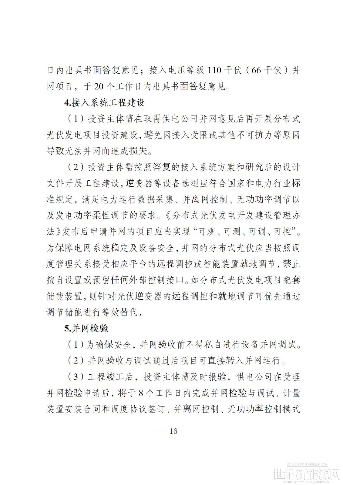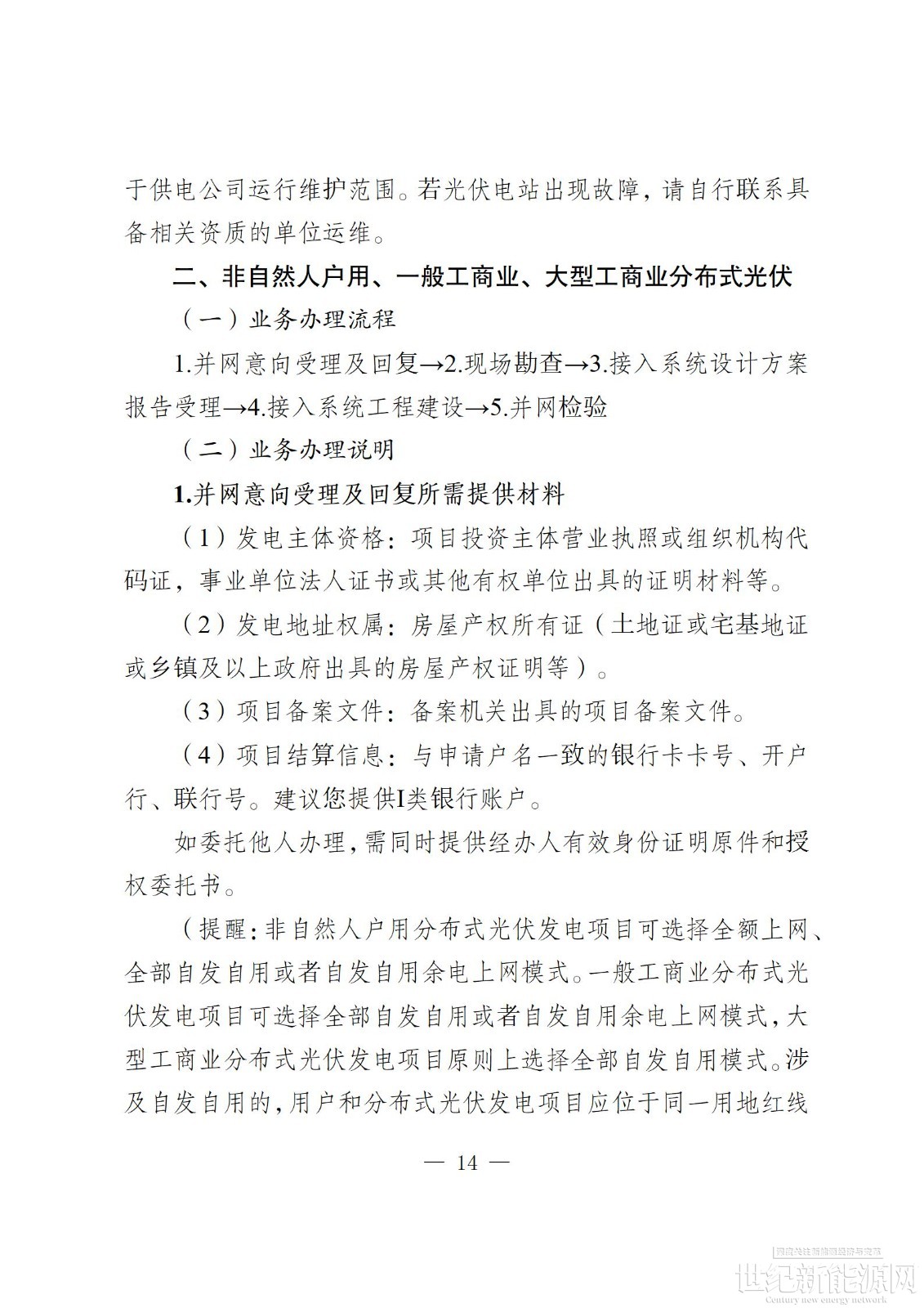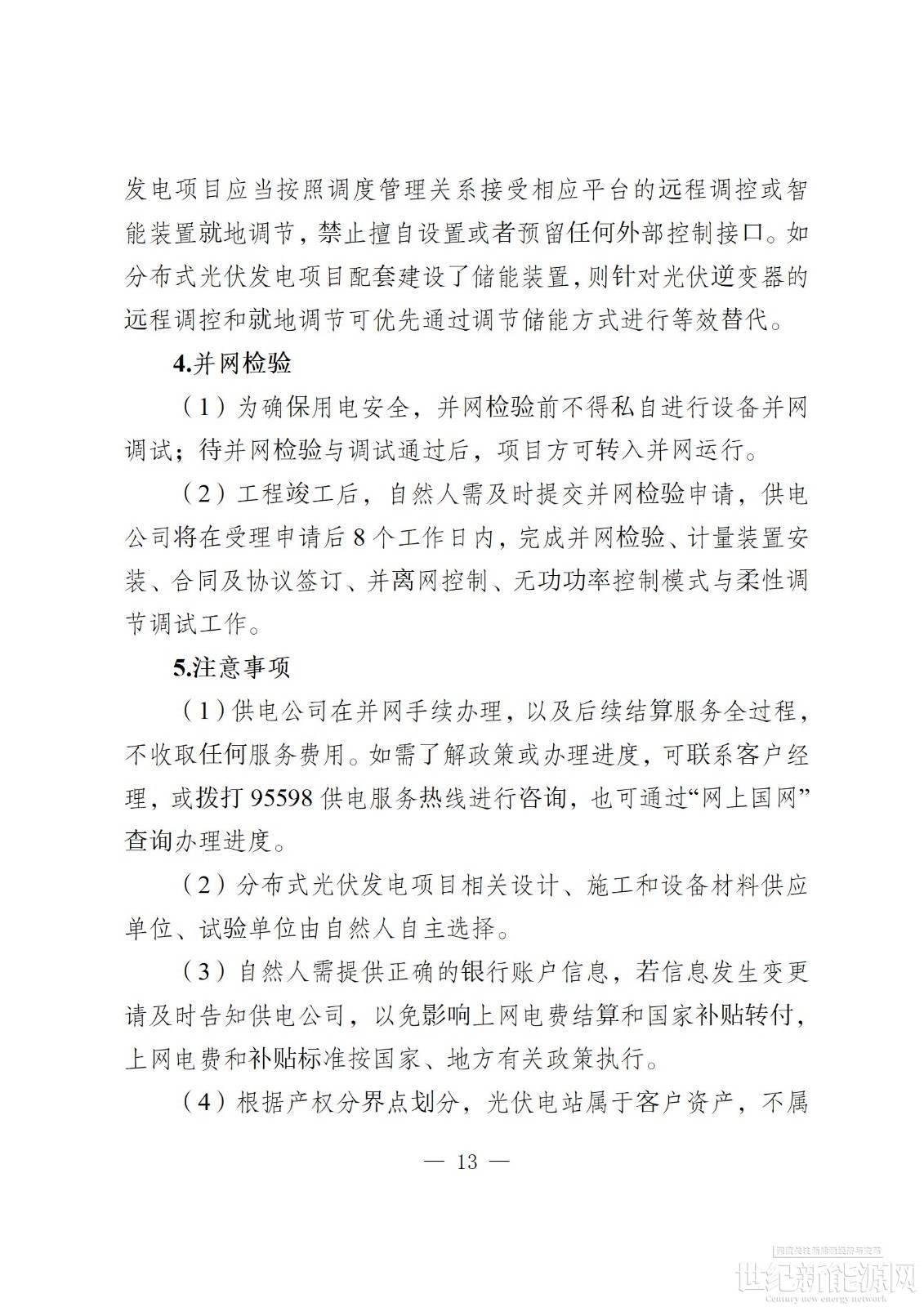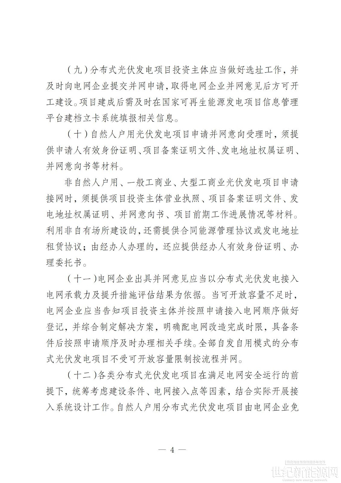 当可开放容量不足时,电网企业应当告知项目投资主体并按照申请接入电网顺序做好登记,并综合制定解决方案,明确配电网改造完成时限,具备条件后按照申请顺序及时办理相关手续。全部自发自用模式的分布式光伏发电项目不受可开放容量限制按流程并网。