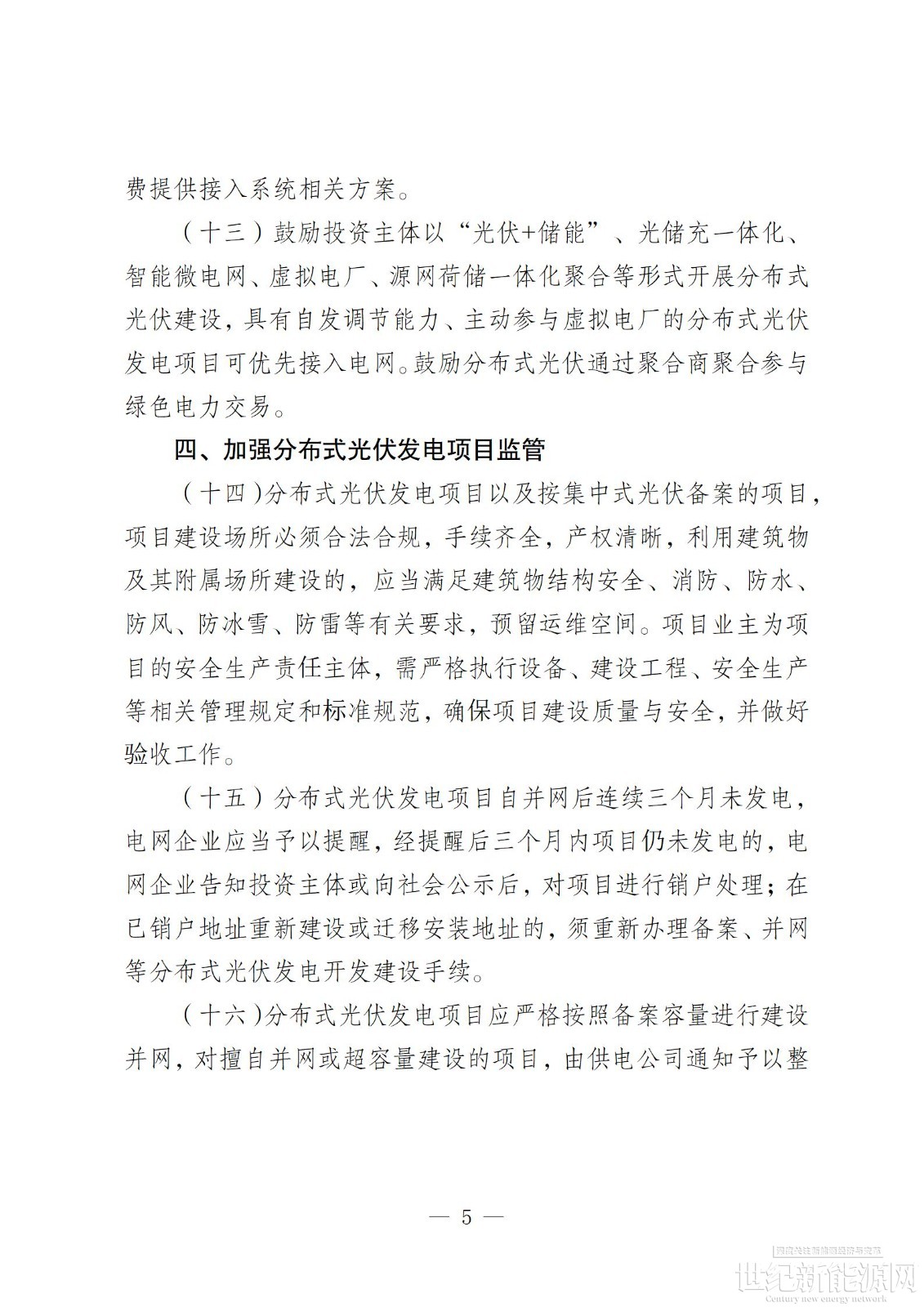 鼓励投资主体以“光伏+储能”、光储充一体化、智能微电网、虚拟电厂、源网荷储一体化聚合等形式开展分布式光伏建设,具有自发调节能力、主动参与虚拟电厂的分布式光伏发电项目可优先接入电网。鼓励分布式光伏通过聚合商聚合参与绿色电力交易。