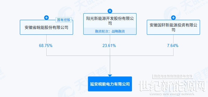 延安皖能电力公司注册资本5亿元,由皖能集团旗下安徽省皖能股份有限公司控股设立,阳光新能源、国轩新能源参与持股。经营范围包含发电技术服务;太阳能发电技术服务;风力发电技术服务;技术服务、技术开发、技术咨询、技术交流、技术转让、技术推广;工程管理服务;合同能源管理;储能技术服务;碳减排、碳转化、碳捕捉、碳封存技术研发等。